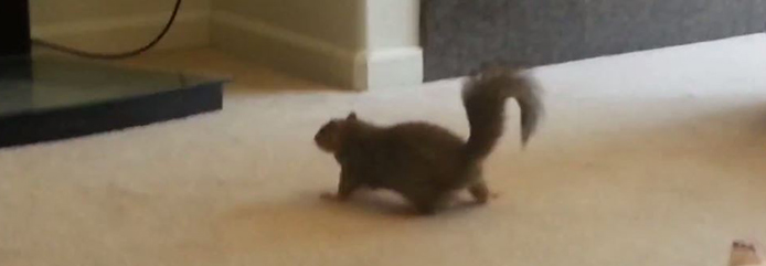 If the room has a door or window leading to the outside, open them all, while praying the squirrel will just leave your home on its own.